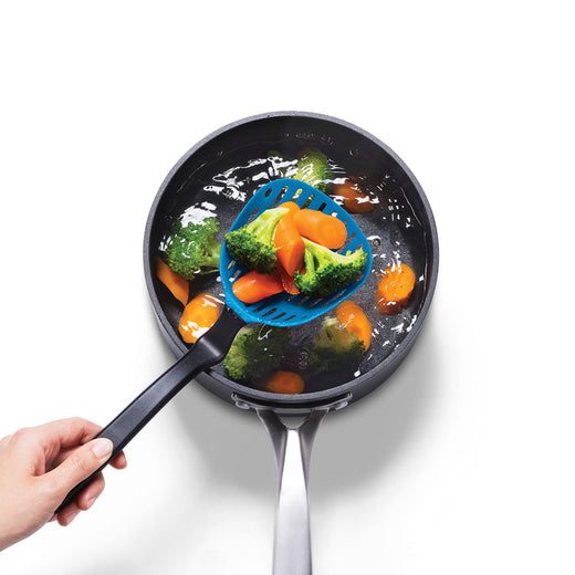 Lestrain es un colador de cuchara que atrapa sus propios goteos y se mantiene en la superficie de tu mueble de cocina.Las ranuras finas hacen que Lestrain sea ideal para todas las tareas, desde albóndigas poco profundas hasta el colado de legumbres y choclo.Su diseño de mango curvo mantiene las superficies limpias.