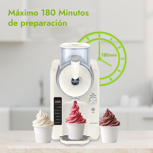 Con la Máquina para Hacer Helado Aura, obtén el placer del helado perfecto o la bebida fría que desees, cuando lo quieras. El proceso es sumamente simple: solo AGREGA tus ingredientes mezclados y viértelos en la máquina; luego, SELECCIONA uno de los 6 modos disponibles a tu preferencia (que incluyen Helado suave, Granizado y Batido); y finalmente, DISFRUTA de tus postres y bebidas frías listos para servir en muy poco tiempo.